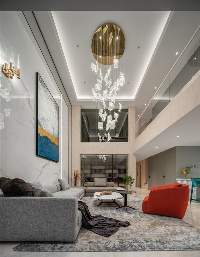 在我的作品中,光永远是一种把空间戏剧化的重要元素。 ——安藤忠雄 “在我的作品中,光永远是一种把空间戏剧化的重要元素。”——安藤忠雄的这句话,恰似设计师周逸权在其470㎡别墅作品里的灵感指引。他借光起笔,用精妙的设计笔触,为这方空间注入独特灵魂。 光之容器,重塑空间秩序 设计师周逸权精心打造的这处别墅,仿若一座“光之容器”,下沉式会客厅、茗茶区与藏书阁,皆沉浸于柔和光泽中。垂直光幕的巧妙设计,打破了传统空间的层级束缚,赋予空间更丰富的通透感。定制水晶砖幕墙,让每一缕晨光都能肆意倾洒,为空间注入生机与静谧。云纹大理石似山峦层叠,鎏金铜件如星屑散落,编织出独属于居者的精神港湾,让空间在延展中尽显悠长韵味。 艺术与功能交织,绘就诗意生活