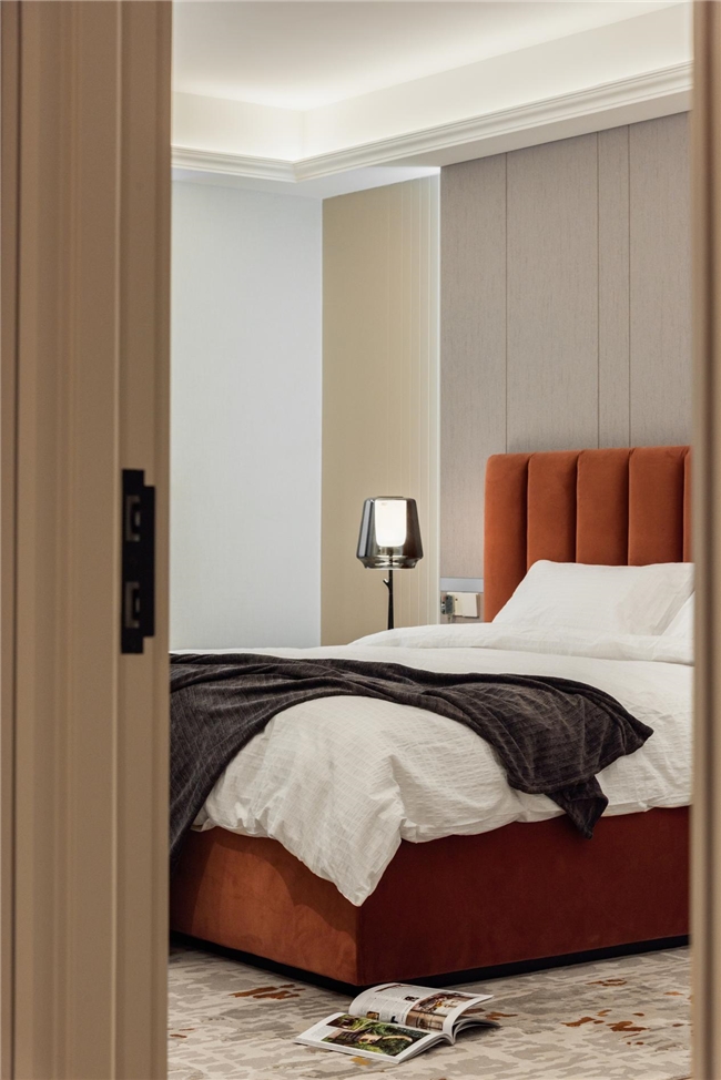 静谧栖居的卧室是质感的营造,通过设计手法的把控,材料工艺的建造,精心呈现如艺术品般一体质感的生活场景,纯净的色调,舒心依靠窗畔,在与自然的交互中,舒缓情绪。